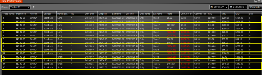 Entonces tomé un quinto trade, anticipado, ya con FOMO que no esta en las reglas porque auqne se veia un pullback en el chart de tic no estaba listo iba contra el ATR,