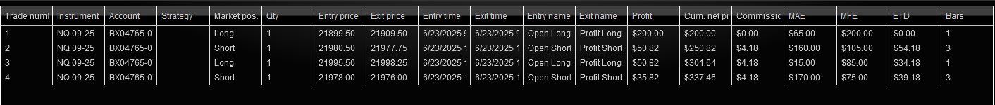 Primer dia con una prueba, algo de nervios, segui las reglas, dos trades BE. veamos como termina la semana.