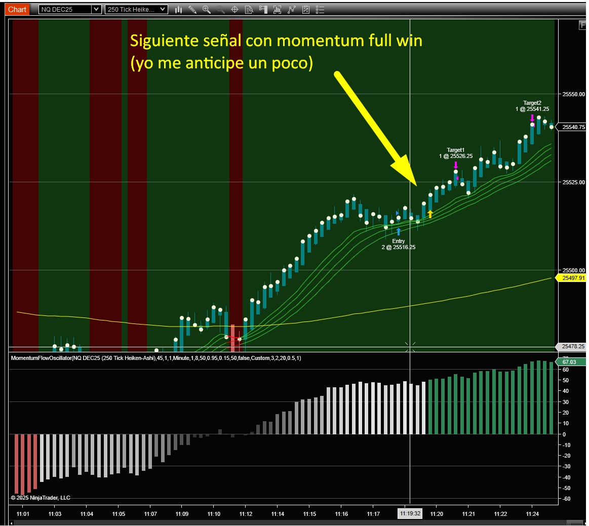 Un dia dificil hoy, requiere de mucha paciencia, el primer trade loser creo que habia razones para tomarlo, pero el segundo ya no, de ahi una espera larga a que hubiera momentum con mucho impulso de tomar trades, luego un trade con momentum perfecto pero en contra del VWAP , no se puede tomar, otras dos señales basura en conrta el VWAP pero que dan FOMO, al final un trade con momentum casi en 50 haciendo un pullback al ribbon entre y fue full win, esto me pone mas o menos en BREAK EVEN , terminamos semana positiva con dias losers.